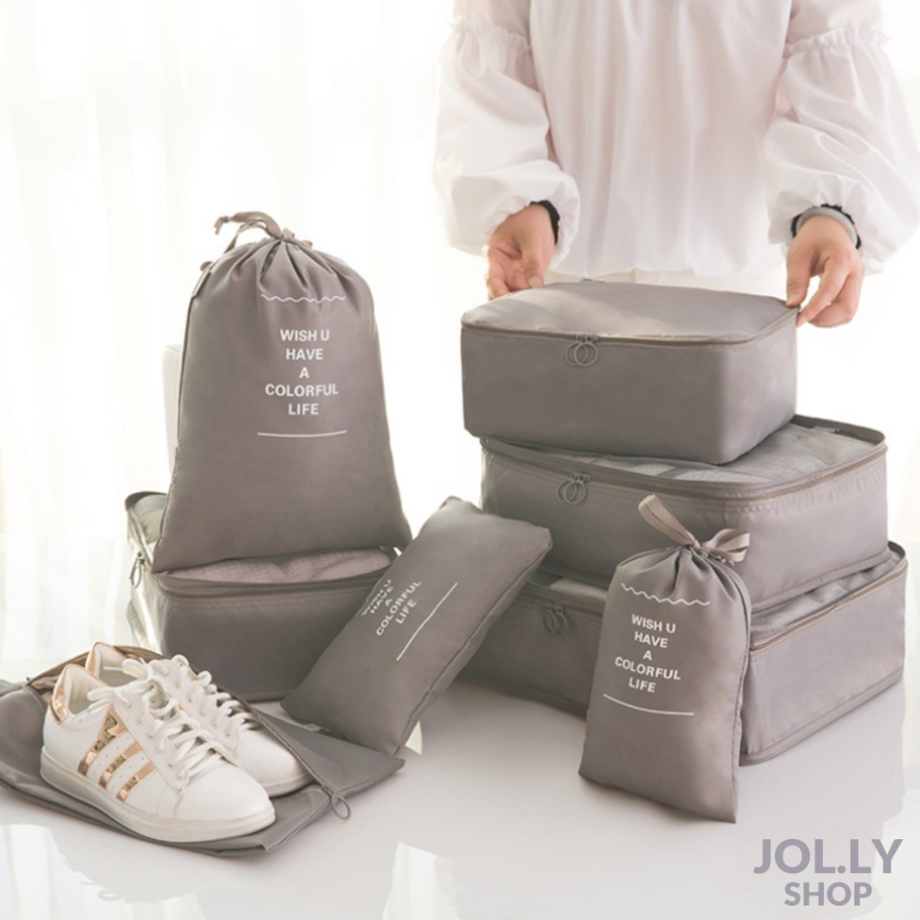 7Pcs Waterproof Luggage Organiser Travel Pouch with Belt